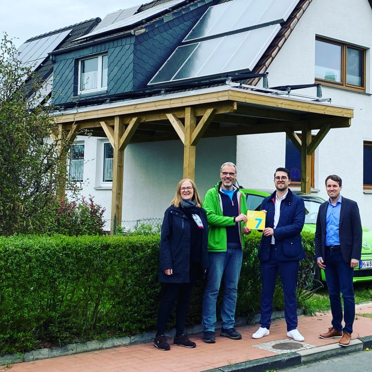 In der Stadt Ronnenberg sind mehr als 5.000 Gebäude für die Einsatz von Solarenergie geeignet, davon werden bisher etwa sieben Prozent genutzt. Diesen Anteil möchten wir massiv steigern, die Solaroffensive ist daher nur der Anfang", betont Bürgermeister Marlo Kratzke.Der Bürgermeister übergab jetzt eine neue Sonnenhausnummer an den Ronnenberger Jens Williges. Herr Williges ist ehrenamtlich im Rat der Stadt seit Jahren für erneuerbare Energien engagiert, seit 2021 als proKlima-Beiratsmitglied aktiv und auch privat für Vorreiter für Solarenergie.