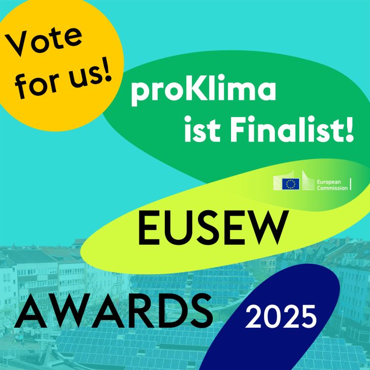 proKlima hat es auf die Shortlist der European Sustainable Energy Awards 2025 geschafft. Jetzt geht es um Platz 1. Das Online-Voting entscheidet - Vote für uns!