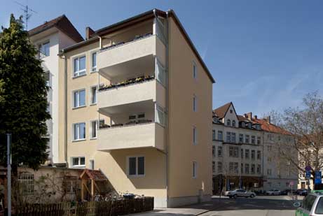 The insights are similiar: who wants to modernize the one watchs one the same also for other deficiencies. Especially, if thermography takings reveal the buildings heat loss relentlessly. After a first consulting through an energy adviser and incorporating the house as a dena-model house, the buildings modernization project began. The aim was, to reduce energy needs to 50 percent of a comparable new build. For that reason, besides other subsidies, a repayment grant from the KfW development bank in the amount of 20 percent of the loan volume was offered. The dedicated project had need of big steps: heating and water heating is realized since 2008 through a gas fired cogeneration heat and power plant, which generates besides heat as well electricity. 3 of 6 flats consume the generated electricity on their own, everything else is fed into grid. Valuable insulated were roof, exterior walls and basement ceiling, but even the buildings base received an insulation. Heat insulation and solar energy generation are the main characteristic of the new installed valuable passive house windows. A central controlled comfort ventilation system with heat recovery functions distributes constantly fresh and well-temperated air. With a competent guide, the leaseholders grew to like nearly each of the passive houses strengths and now enjoy the new awareness of life.a