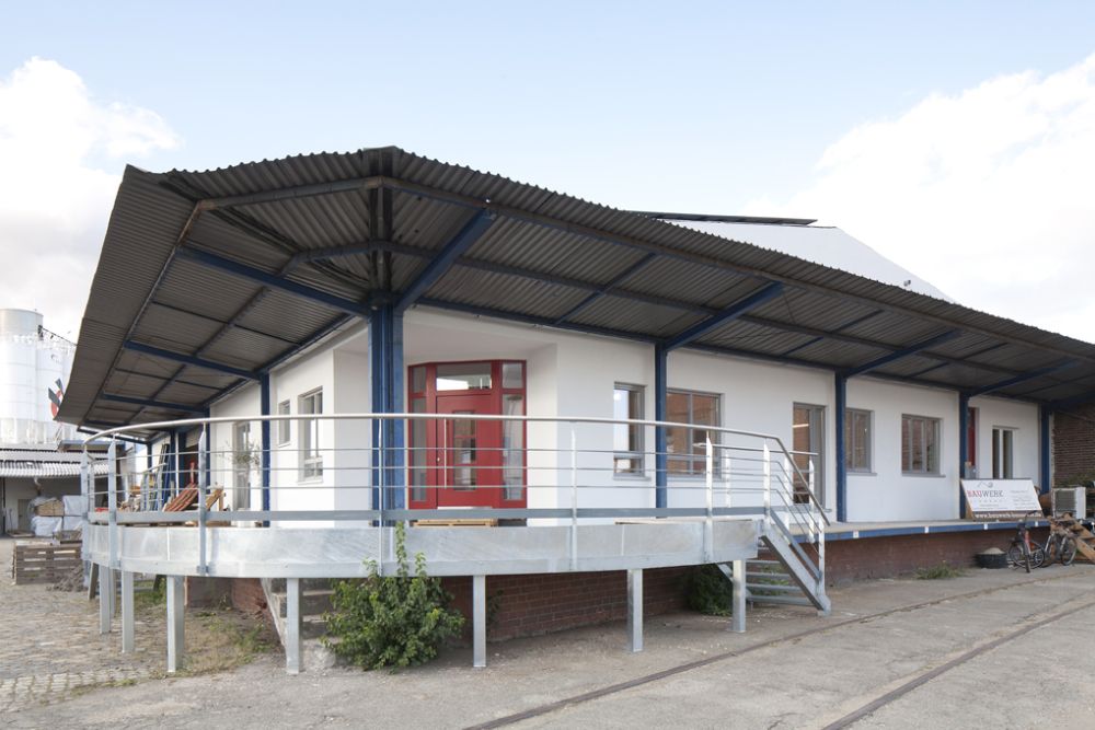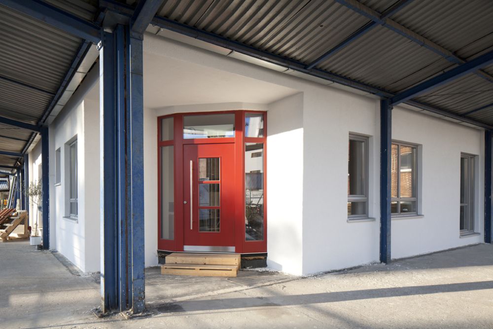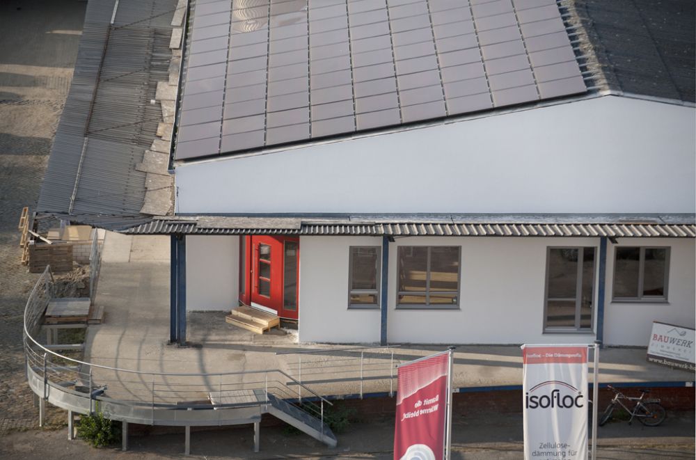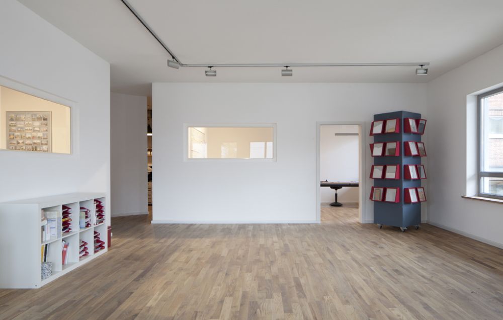 K3 Dammservice is an organization specializing in the installation of cellulose insulation. The company has grown continually since its founding in 1999, and now numbers among the 20 largest cellulose specialists. Located in the Linden Harbor commercial zone, the office building with exhibition areas was integrated into an existing warehouse. The construction team used pre-made wooden elements to construct a block, then filled the exterior components with blown-in cellulose.