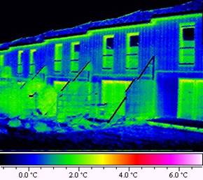 heat supply for water heating and space heating via local heat and a solar plant for water heating on each house, heat distribution via supply air and radiators in the bathrooms