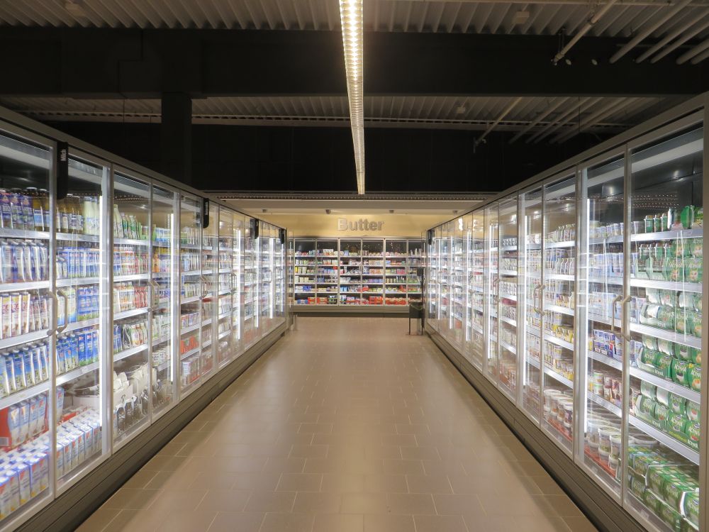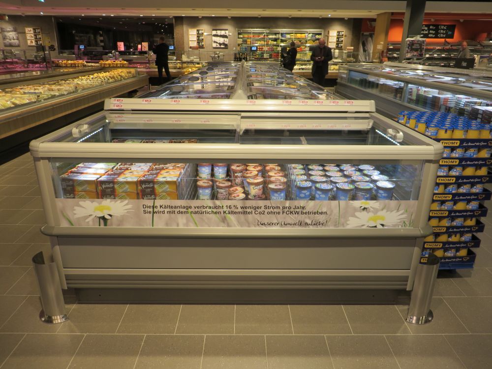 Ausstattung der Tiefkühlung u.a. mit effizienter 3-fach Verglasung, beschichtet mit Nanoteilchen zur Ableitung von Kondenswasser; Eingebaute LED-Leuchten mit geringem Infrarotanteil.