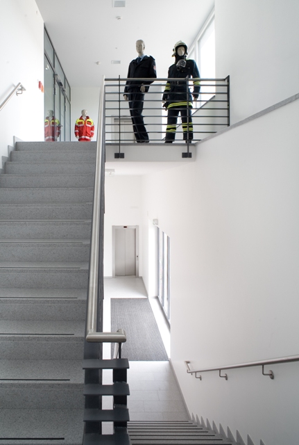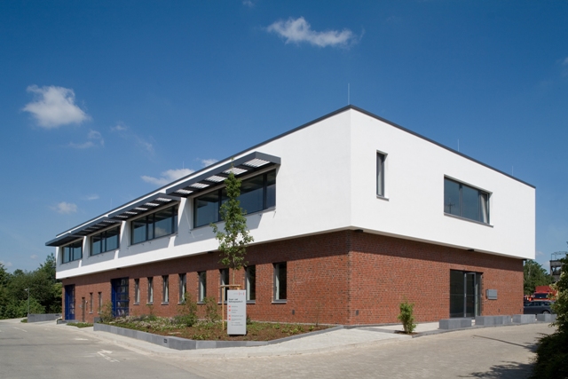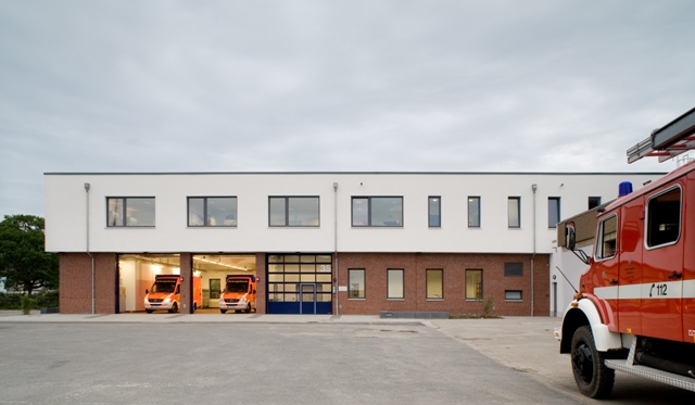 Der zweigeschossige Neubau im südlichen Bereich der Feuer- und Rettungswache 2 in Hannover-Stöcken ist das größte Bauvorhaben der Feuerwehr Hannover seit mehr als 30 Jahren. Im Erdgeschoss ist eine hochmoderne Einrichtung untergebracht, um noch besser auf Großschadensfälle vorbereitet zu sein: Eine Desinfektionseinrichtung für Rettungsdienstpersonal und –fahrzeuge, ein Sanitätsmittellager sowie eine Fahrzeughalle. Die Rettungsassistentenschule im Obergeschoss erfüllt die Kriterien der Passivhaus-Bauweise.
