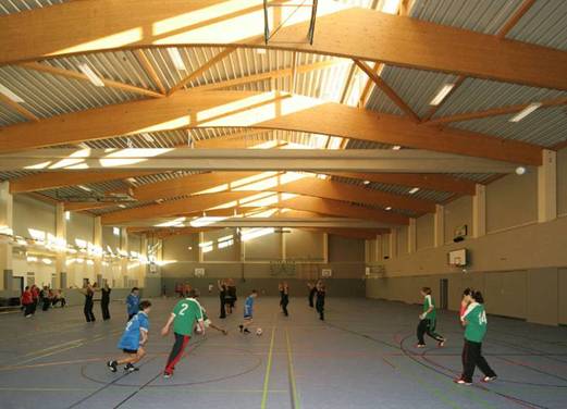Die Stadt Laatzen errichtete im Jahr 2005 die damals weltgrößte Sporthalle im Passivhaustandard für die Albert-Einstein-Schule. Die Halle ist über 28 Meter breit und 45 Meter lang. Das Konzept kam so gut an, dass das Planungsteam eine weitere Kommune von einer Passivhausturnhalle überzeugen konnte.