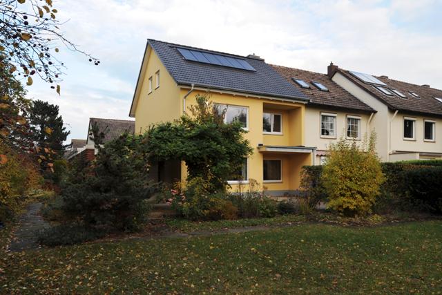 Der vorhandene Gas-Brennwertkessel wird weiter genutzt und ist um eine stagnationssichere Solarwärmeanlage mit Vakuumkollektoren sowie einen Schichtenspeicher erweitert worden.