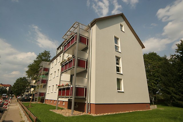 Hohe Standards wurden daher besonders angelegt bei der Dämmung dar Außenwände, des Daches und der Kellerdecke sowie beim Einbau von Passivhausfenster mit 3-Scheiben-Verglasung. Zur Modernisierung der Heizungsanlage wurde ein zentraler Gas-Brennwertkessel mit Warmwasserspeicher installiert und die Heizkörper über einen hydraulischen Abgleich an den neuen, stark reduzierten Wärmebedarf angepasst. Eine zentrale Komfortlüftungsanlage mit Wärmerückgewinnung versorgt die Wohnungen mit gleich bleibend frischer Luft und transportiert Feuchtigkeit aus Bad und Küche nach draußen. Ein Erdwärmetauscher unterstützt die Anlage bei der Vorwärmung der Außenluft. Außerdem wurde das Dachgeschoss ausgebaut und damit Raum für zwei Wohnungen geschaffen.