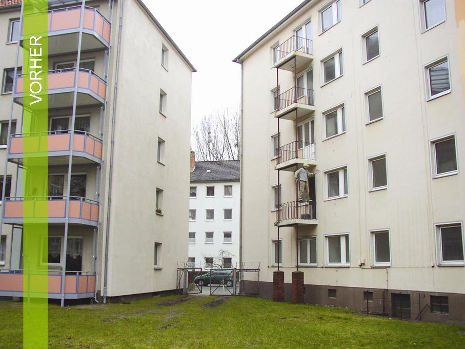 Die energetische Modernisierung des Gebäudes mit hocheffizienten Passivhaus-Komponenten ist so konsequent umgesetzt, dass der Passivhaus-Standard mit einem Heizwärmebedarf von nur noch 15 kWh/(m²a) erreicht wurde. Die Hüllflächen sind sehr gut gedämmt und die Wärmebrücken so weit wie möglich minimiert. Für Wohnkomfort sorgen hochwertige Passivhaus-Fenster. Jede Wohnung ist mit einer eigenen Lüftungsanlage mit Wärmerückgewinnung ausgestattet. Die Beheizung der Wohnräume erfolgt über die Zuluft. Auf das alte und für den neuen Energiestandard ohnehin drastisch überdimensionierte Heizverteilsystem kann nun verzichtet werden. Lediglich die Badezimmer besitzen aus Komfortgründen noch einen kleinen Handtuchheizkörper.
