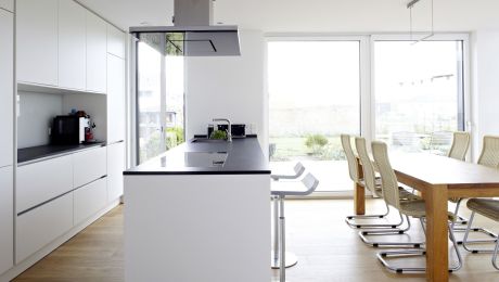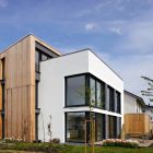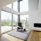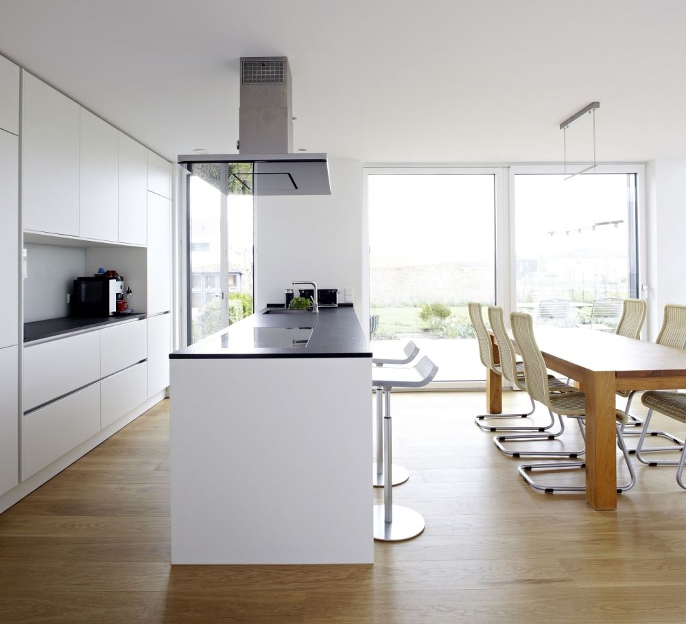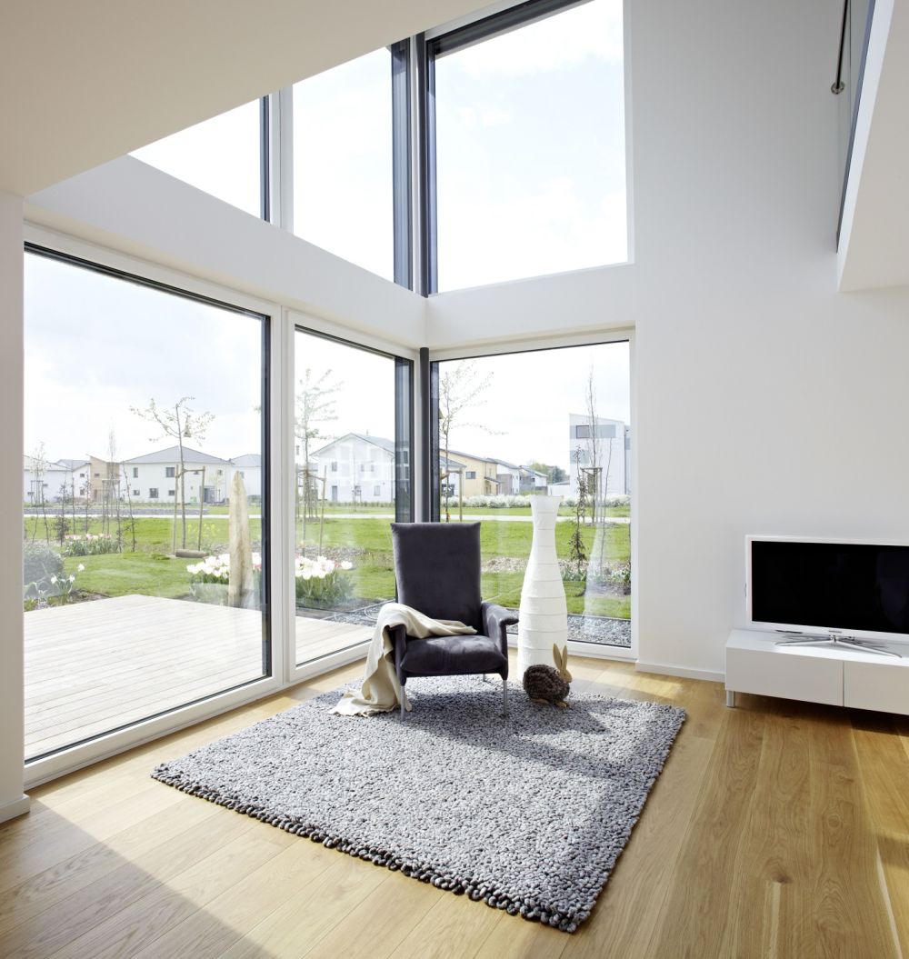 Ein Kubus mit Winkel erfüllt alle Vorgaben des Passivhaus-Baugebietes zero-e Park in Hannover Wettbergen und bildet die Außenhülle für ein Wohnmöbel. Die Abfolge von offenen Bereichen mit Lufträumen und Rückzugsbereichen wie der Lounge im DG mit Dachterrasse schaffen ein abwechslungsreiches Wohngefühl.