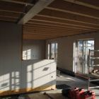 vorgefertigte Holztafel-Elemente mit Installationsebene sowie insgesamt 36 cm Mineralfaserdämmung und diffusionsoffener Holzfaserplatte, U-Wert = 0,09 W/(m2K)